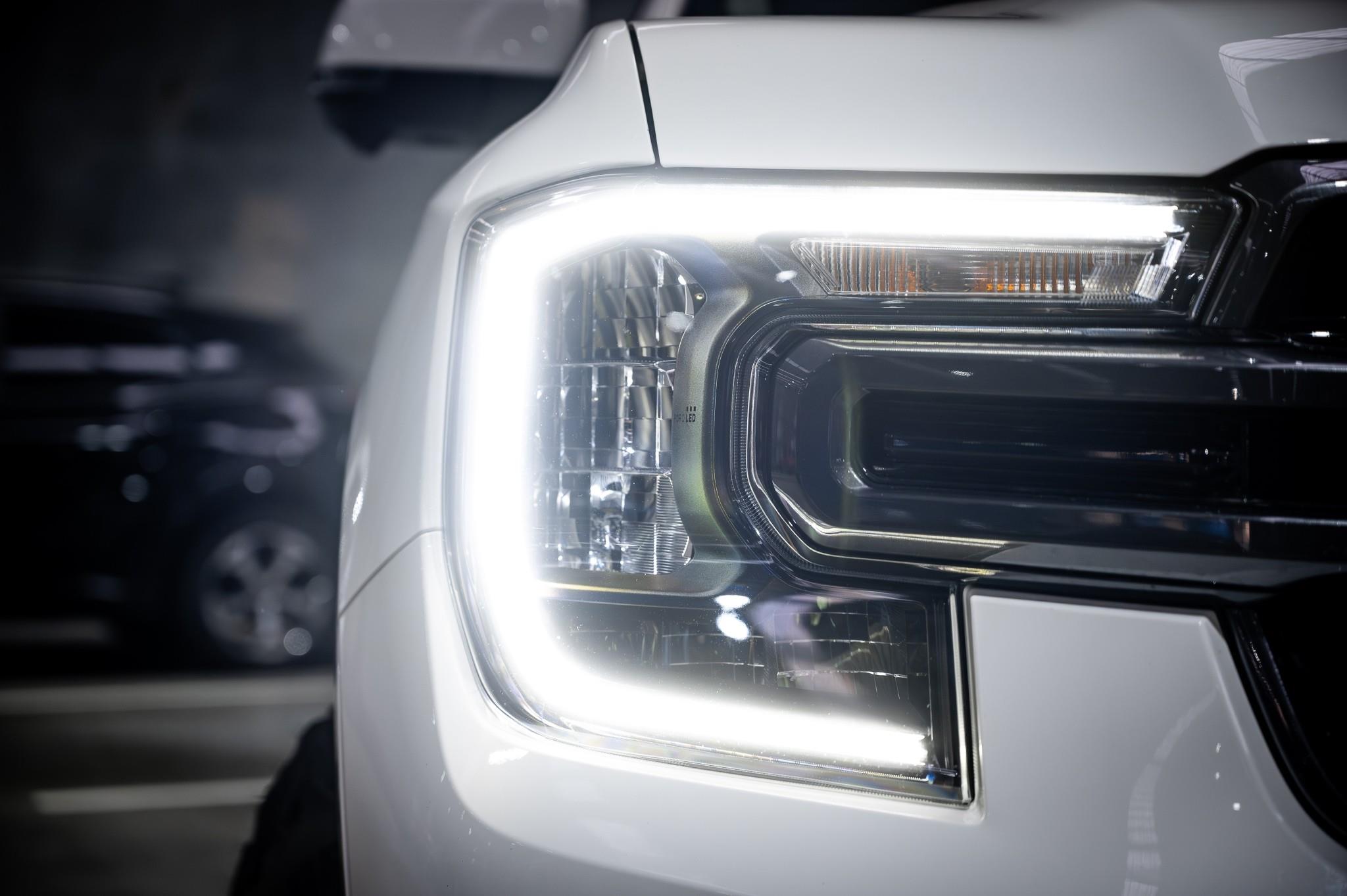 - LED headlights with C-clamp signature lighting