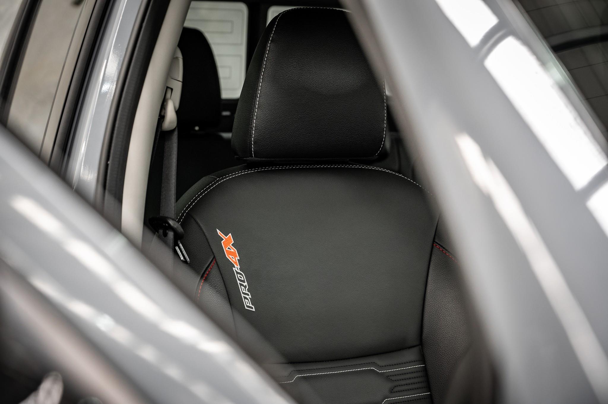 Leather-accented PRO-4X seats with embroidered logos & red stitching