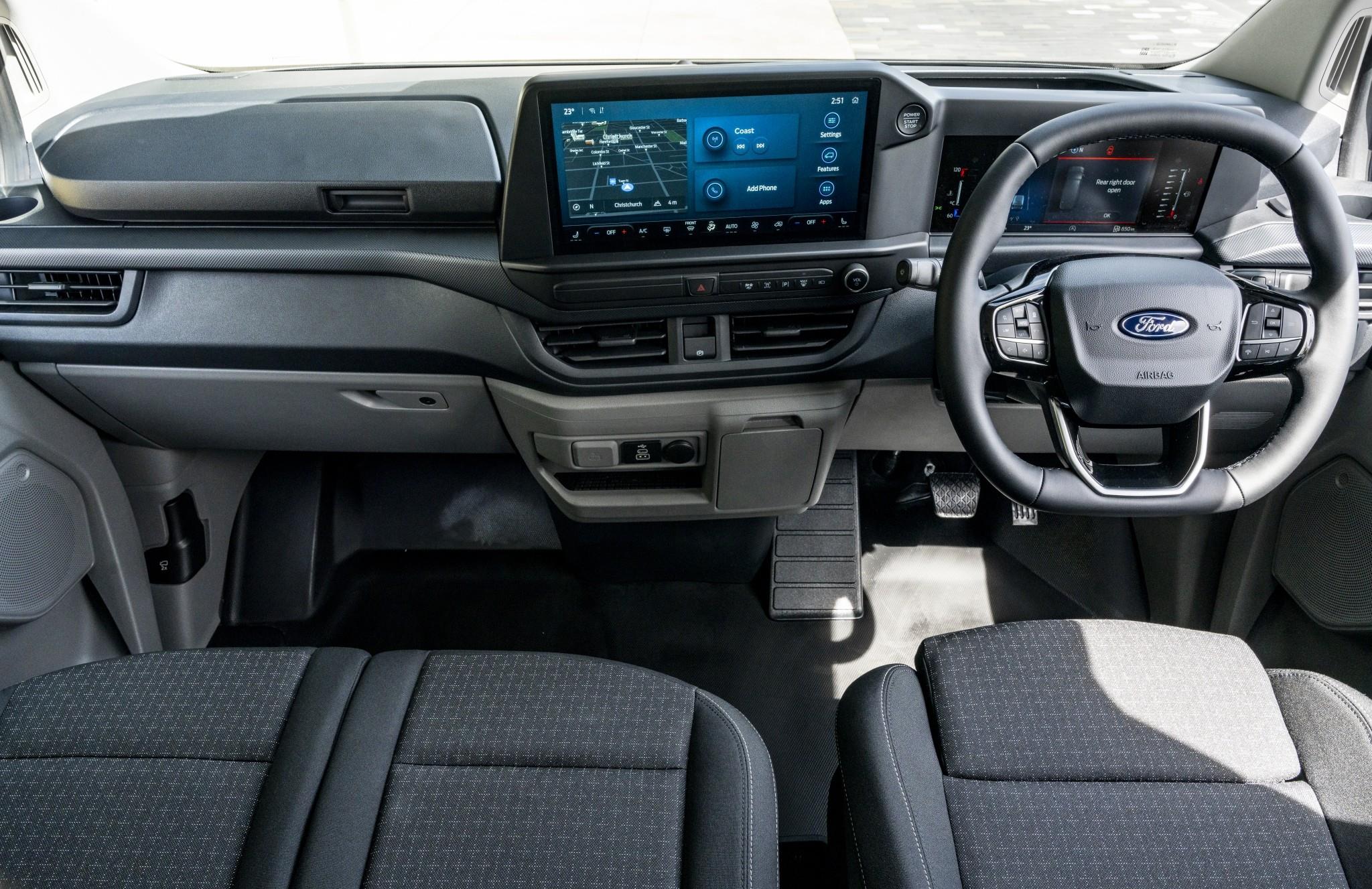 Smart & Stylish With a bold black grille on the diesel model and a striking honeycomb grille on the electric variant, the Transit Custom Kombi stands out. LED headlights and 16-inch steel wheels with covers add to its modern look. Technology at Your Fingertips Stay connected with a 13-inch touchscreen featuring wireless Apple CarPlay and Android Auto, plus Ford's SYNC4 system with voice control and built-in satellite navigation. The 5G embedded modem and FordPass Connect provide real-time updates and remote vehicle access.