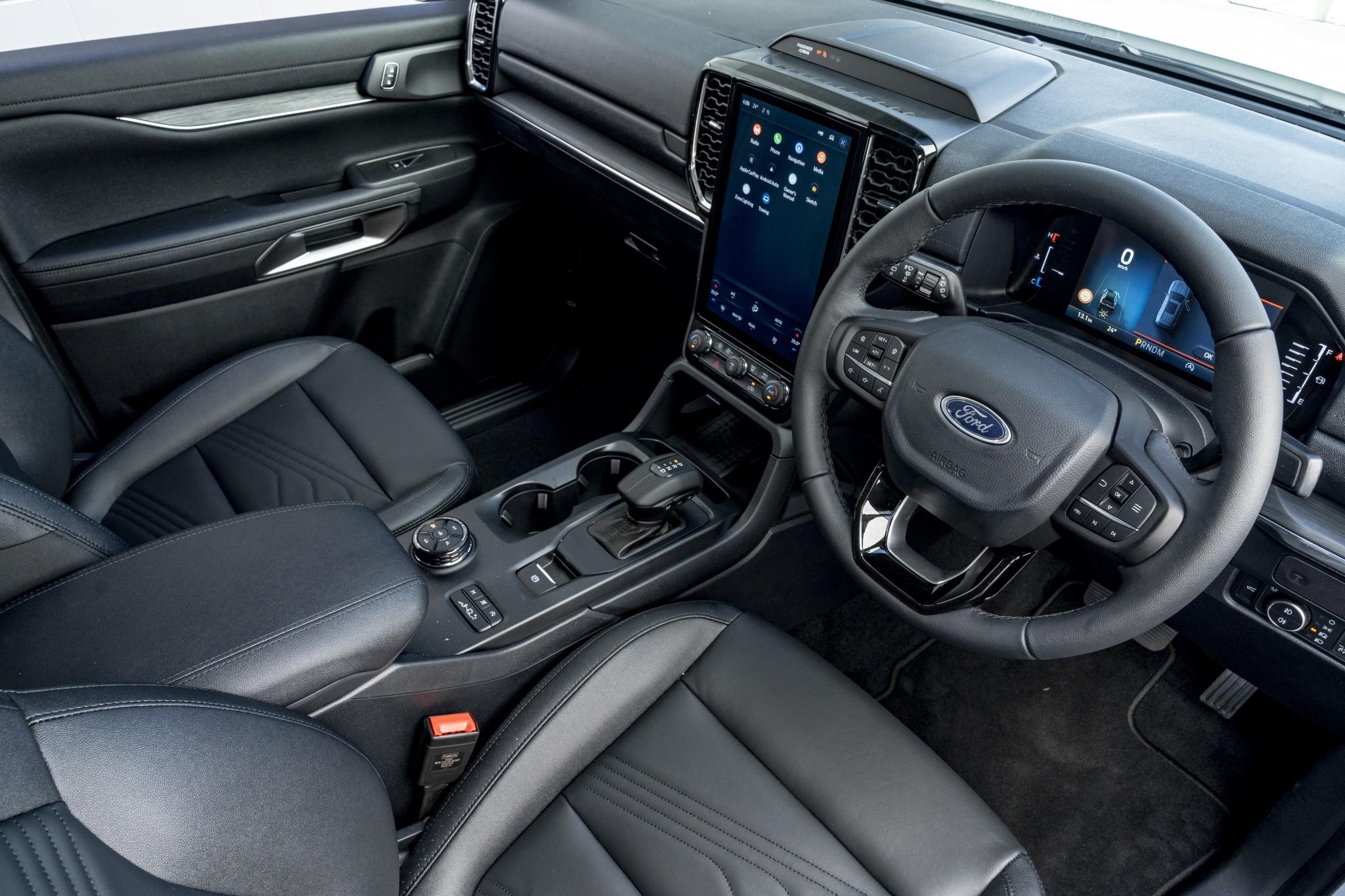 Inside, the 8-inch digital instrument cluster and 12-inch LED portrait screen with SYNC 4A provide advanced connectivity, including wireless Apple CarPlay, Android Auto, and wireless charging. The embedded modem ensures you're always connected.